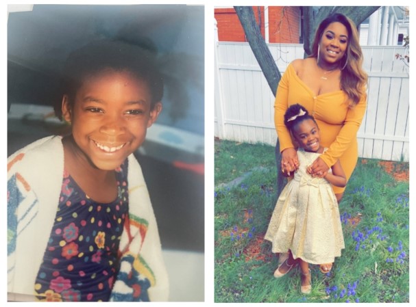 Photo on Left: Childhood photo of Danielle; Photo on Right: Danielle with her daughter, Sophia